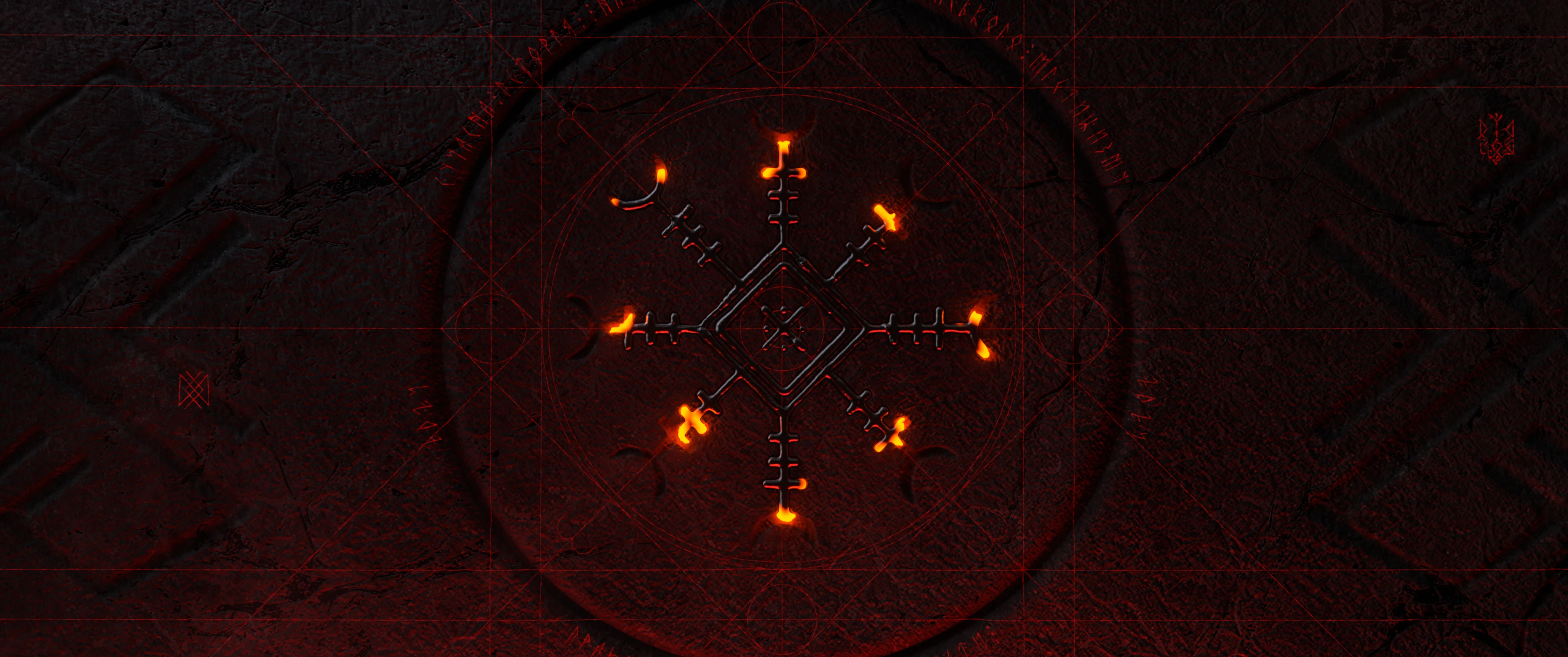 During refinement, we realized that the medallion concept did not deliver the desired visual strength. I suggested shifting toward a rune wall interpretation — a more architectural and atmospheric approach.