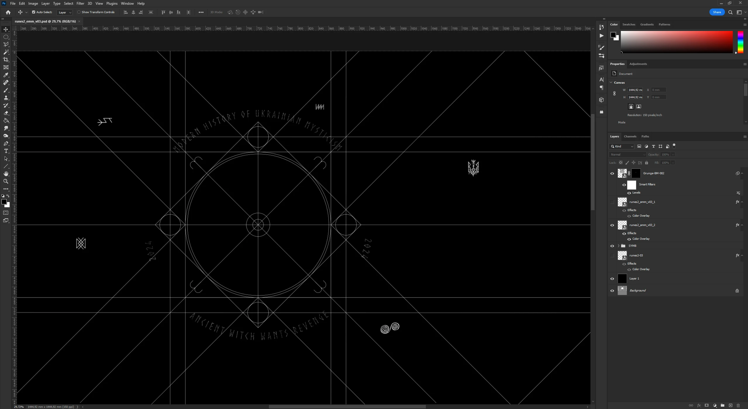 At this stage, additional graphic elements were designed to enrich the visual complexity of the symbol. Custom lines and rune-inspired details were developed to reinforce the overall aesthetic and deepen the symbolic language.